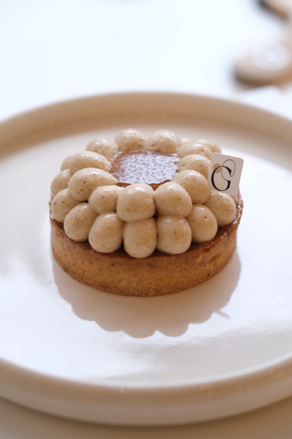 Pâte sucrée noisette, croustillant noisette, crémeux noisette, ganache montée noisette, praliné noisette
